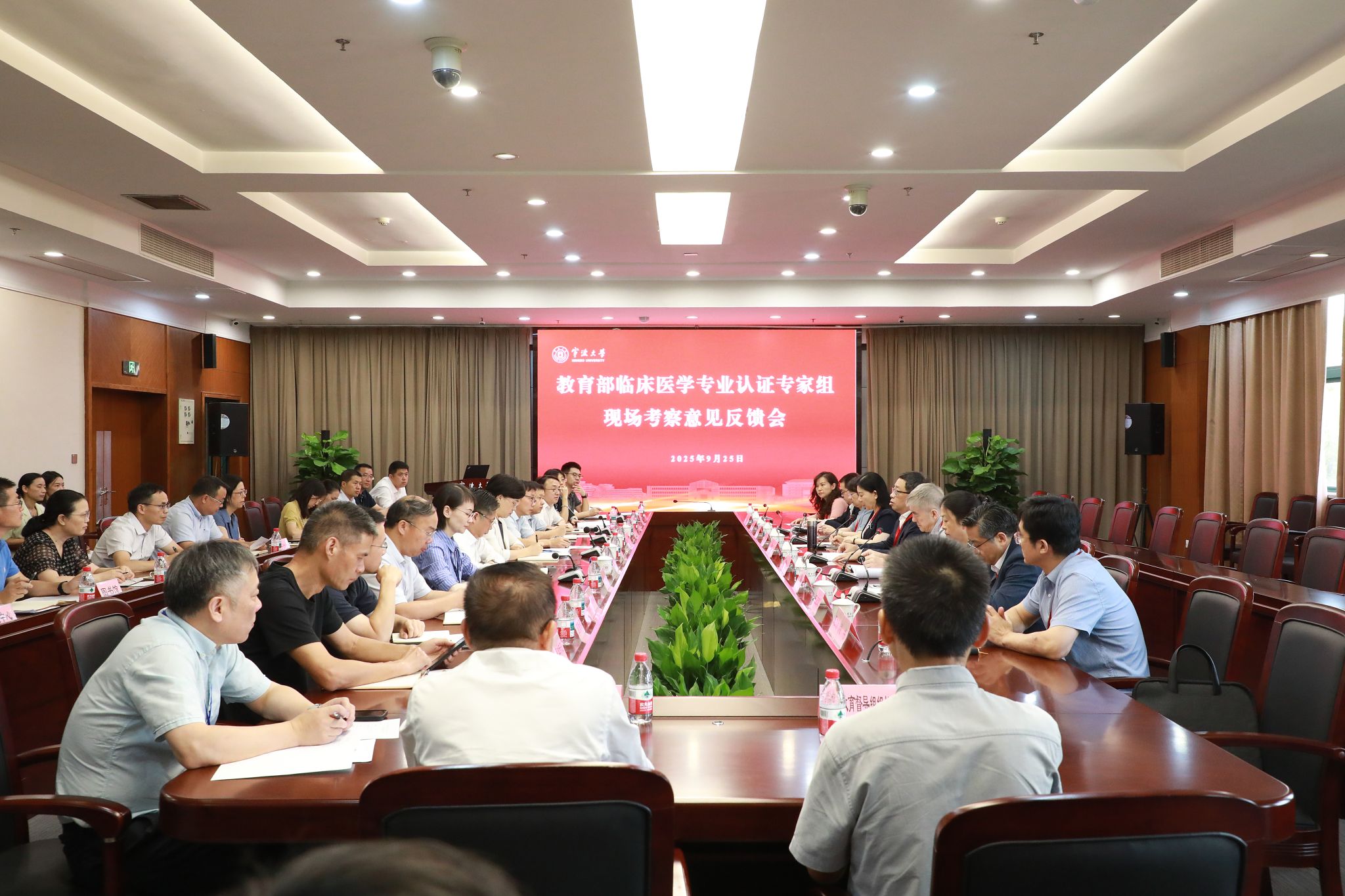 9月25日上午,临床医学专业认证现场考察意见反馈会在安中大楼碧华厅举行。专家组全体成员,市卫健委副主任孙向东,校党委书记张瑞丽、校党委副书记张真柱、副校长李伟平出席会议。