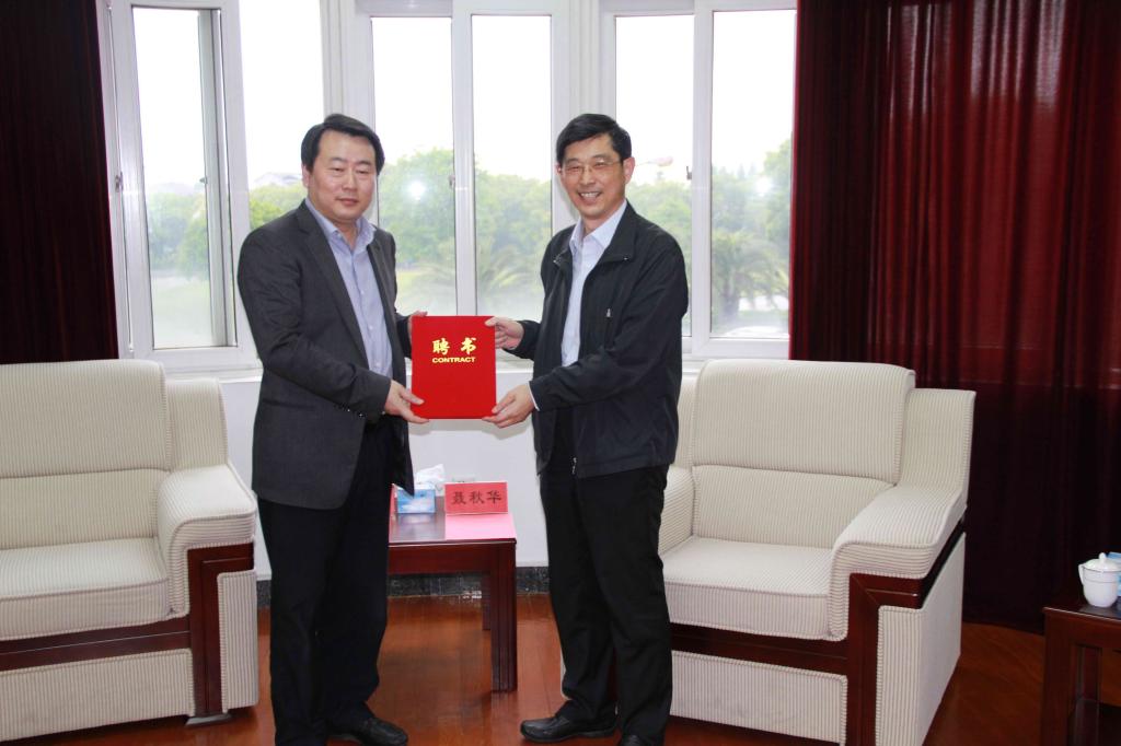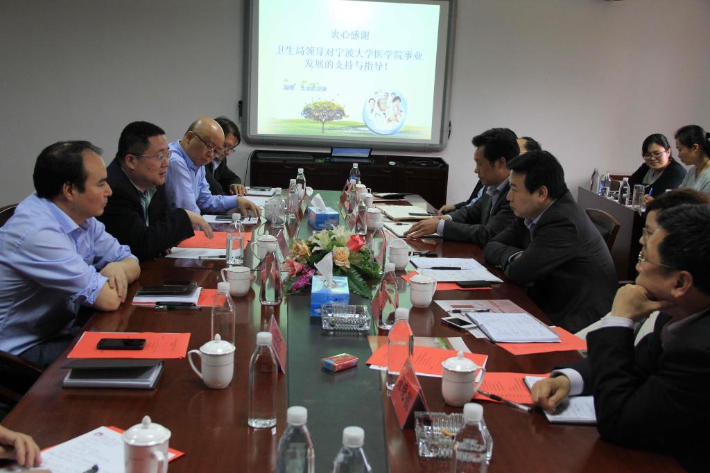 5月9日下午,宁波市卫生局局长王仁元携宁波市各大三甲医院负责人一行来我校就医学院临床教学建设和人才培养进行专题调研。我校在医学院王长来楼A202会议室召开了汇报会并举行了兼职硕士生导师聘任仪式。校长聂秋华为王仁元局长颁发了硕士生导师聘书,并佩戴校徽。副校长郑孟状出席了工作汇报会。医学党政班子成员、各学科系负责人参加了汇报会。