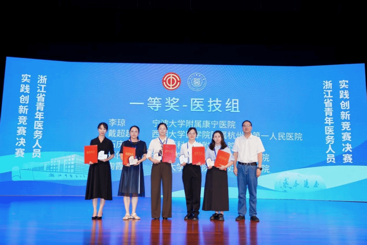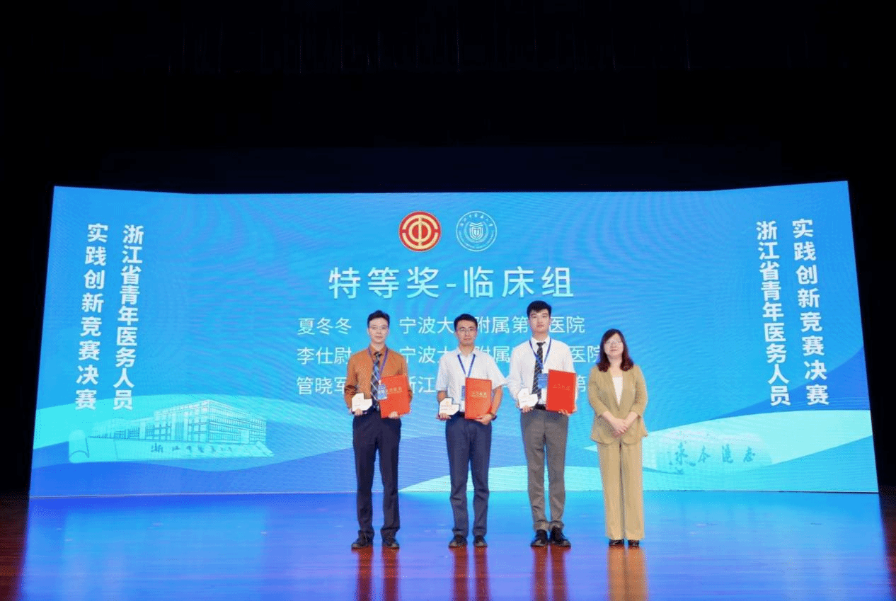 On September 27, the Zhejiang Provincial Youth Medical Workers' Practical Innovation Competition, sponsored by the Zhejiang Federation of Trade Unions and undertaken by the Zhejiang Education Trade Union, was held at Zhejiang Chinese Medical University. After fierce competition in the preliminary round, roadshow, defense and other sessions, Xia Dongdong from the First Affiliated Hospital of Ningbo University and Li Shiwei from Ningbo University Affiliated Li Huili Hospital won the first and second prizes of the Special Award in the Clinical Group respectively; Li Qiong from Ningbo University Affiliated Kangning Hospital won the First Prize in the Medical Technology Group; and Zhu Minbo from Ningbo University Affiliated Women and Children's Hospital and Xu Xiongfeng from the First Affiliated Hospital of Ningbo University won the Second Prize in the Clinical Group.
